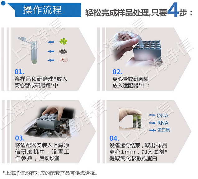 上海凈信®的Tissuelyser®組織研磨儀是一種特殊的、快速的、高效率的、多試管的一致系統(tǒng)。它能將任何來源(包括土壤、植物和動物的組織/器官、細菌、酵母、真菌、孢子、古生物標本等)的原始DNA、RNA和蛋白質(zhì)進行提取和純化。